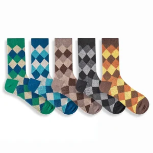 Combed Cotton Tube Socks Retro Diamond Lattice Trendy Stockings