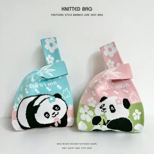 Panda wrist bag handbag cute panda flower knitted bag
