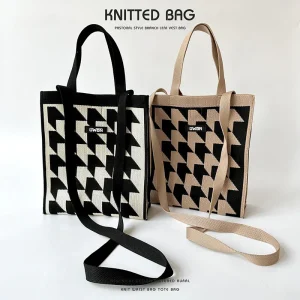 Corrugated double-face knitted shoulder bag handbag knitted bag