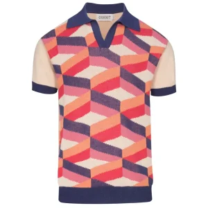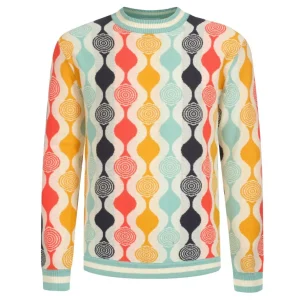 Men’s 70s Pastel Knit Shirt – Abstract Colorblock Button-Up