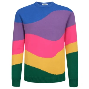 Men’s Color Block Wave Knit Sweater – Blue, Pink, Yellow & Green