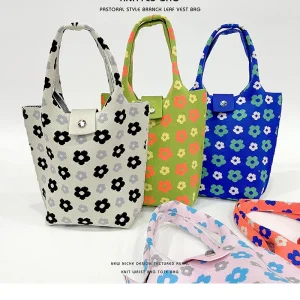 Flower knitted shoulder bag
