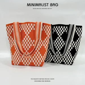 Black and white checkerboard knit tote