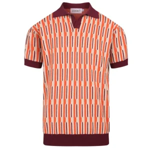 Men’s 70s Mod Jacquard Knit Polo – Burnt Orange Vertical Dash Shirt