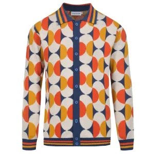 Men’s 70s Geometric Knit Cardigan – Colorful Retro Button-Up Sweater