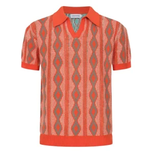 Men’s Orange Jacquard Knitted Polo