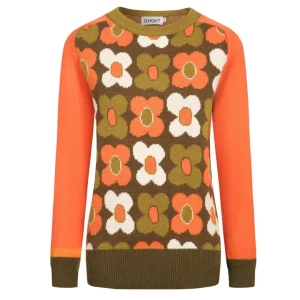 Women’s orange vintage sunflower knitwear