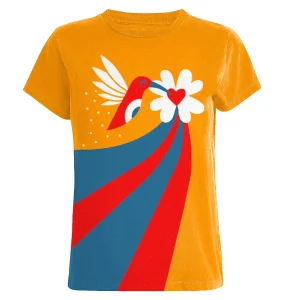 Women’s orange bird color cotton T-shirt