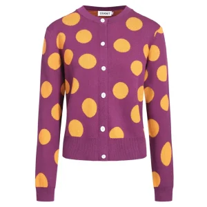 Women’s purple polka dot cardigan sweater-Cropped Length