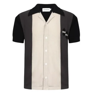 Men’s 60s Mod Black & Gray Knit Button Shirt – Diamond Chest Detail