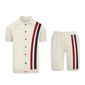 Men’s white striped cardigan shorts suit
