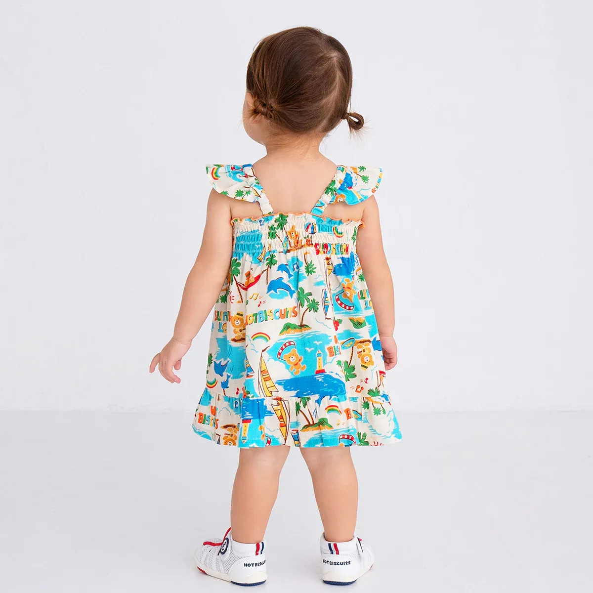 Say aloha to this tropical one-and-done look to take on every getaway from the Aloha Print Collection. Beans the Bear leisurely unwinds in the exclusive summer print, lounging in a hammock, jamming on his ukelele, and catching waves on his surfboard. This beach dress is crafted in a heavenly breathable, sweat-absorbent, wrinkle-resistant cotton linen fabric that is both smooth and cool to the touch. Just throw it on for instant vacation mode.