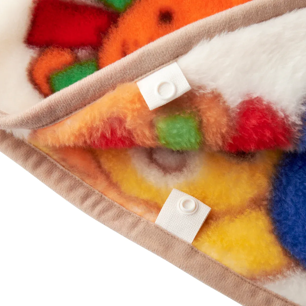 Animal friends unite! Made lovingly in scrumptiously soft blankie-like fabric, the hooded poncho feels as warm as it looks. Colorful MIKI HOUSE logos dance all around Pucci and his adorable animal friends, giving this eye-catcher an extra playful flair. Just zip up the Pucci-adorned fastener to enjoy the cozy silhouette.