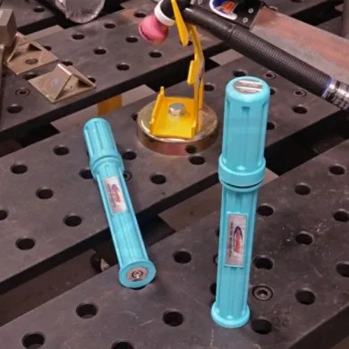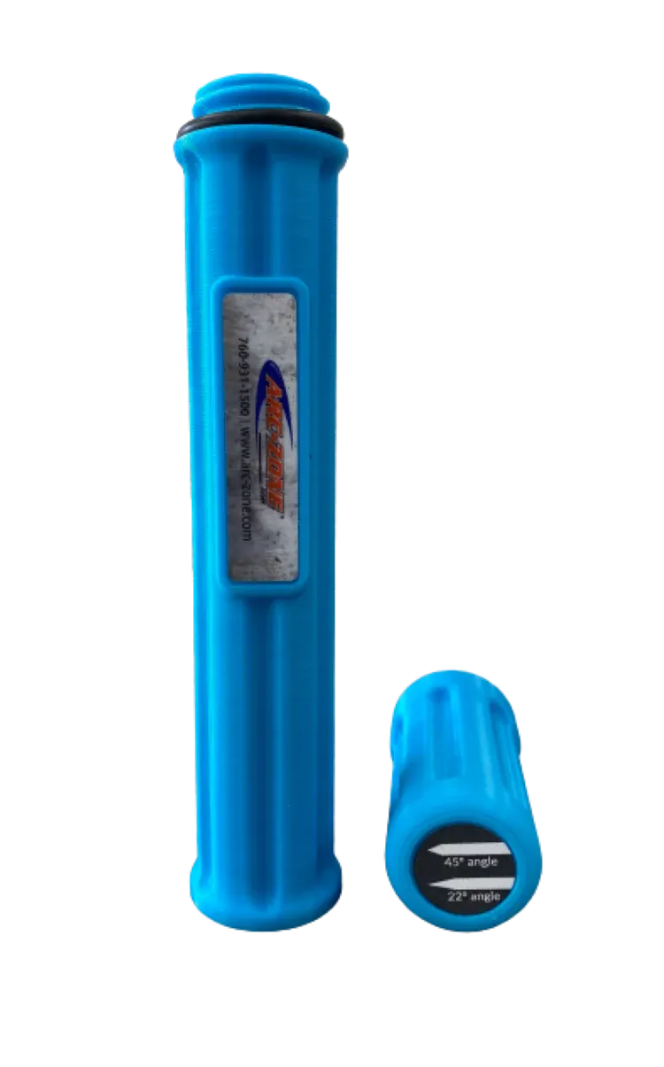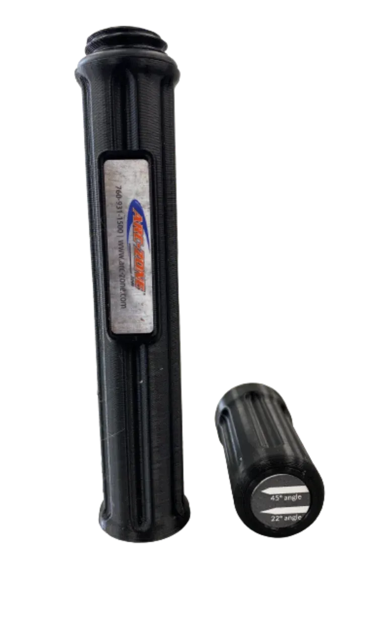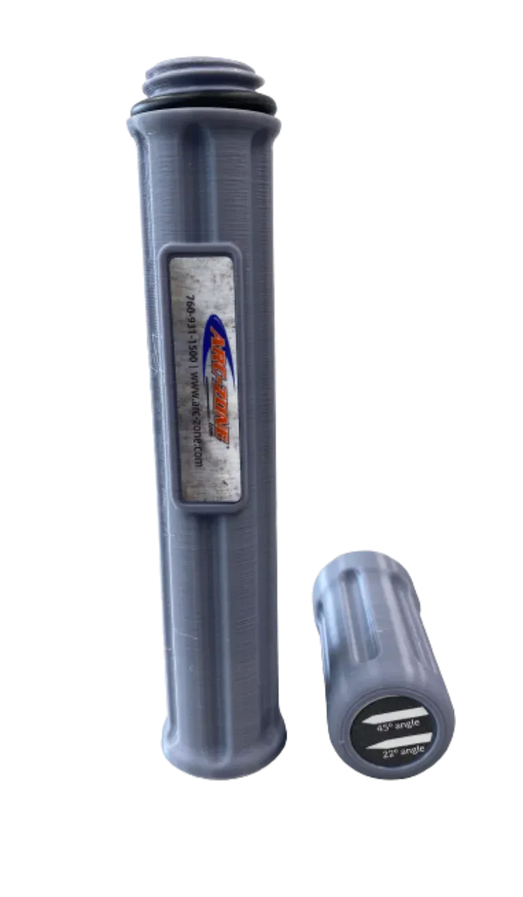 New Gen 3 Arc-Saber™ magnetic tungsten storage container! This is Arc-Zone’s 3rd generation design that has been updated with a thicker cross section for improved durability. Arc-Sabers feature a tough body design, durable threaded-on cap with o-ring seal and a 12.5lbs pull rated Neodymium (rare-earth) magnet in the base. Each Arc-Saber™ includes our “wood strip” that helps to minimize atmosphere and moisture contamination. The Arc-Saber also features a handy sticker on top, illustrating 22° and 45° tungsten tapers for quick reference!