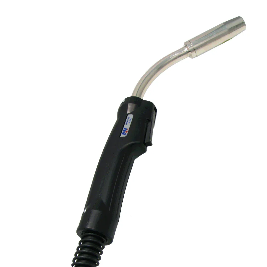 Cool-Grip Semi-Automatic MIG welding torch has been designed for cooler running operation. The Cool-Grip has been engineered to increase welder comfort levels by providing relief from high temperatures in the handle when welding in higher heat applications. The design allows for cooler operation by inhibiting the transfer of heat that is generated at the welding arc and pulled back into the handle area by way of the gooseneck.