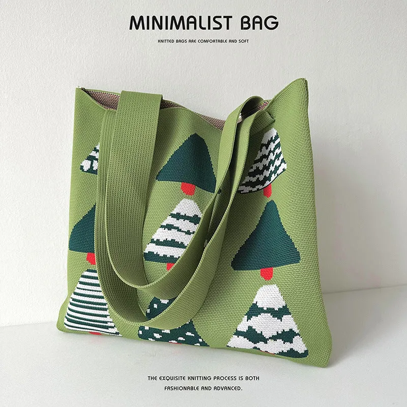 Christmas tree knitted tote bag
