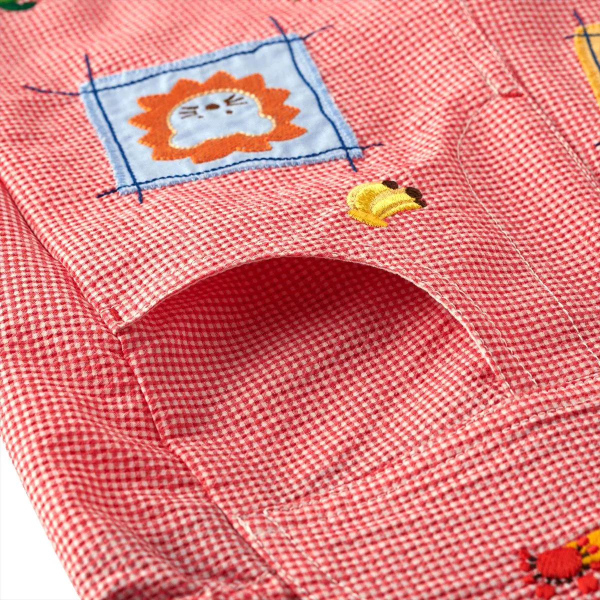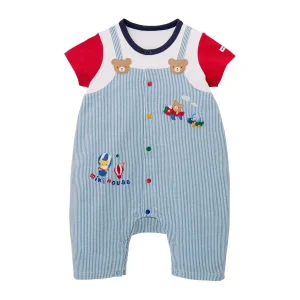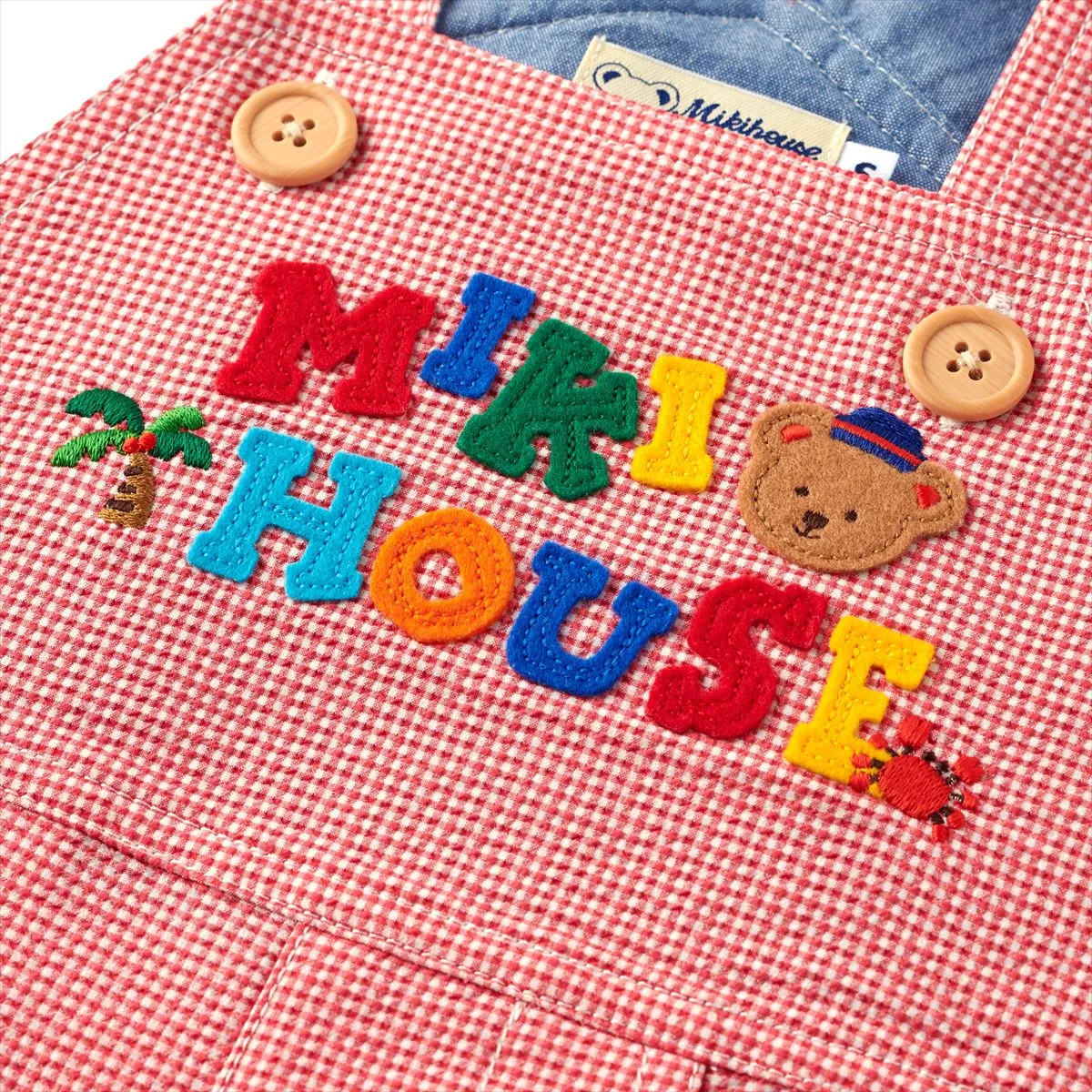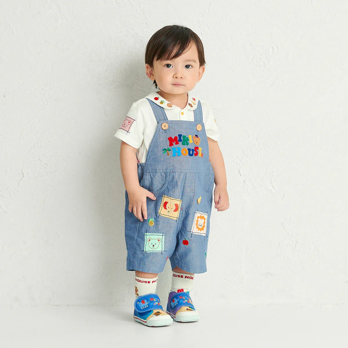 Bringing a nostalgic touch, these knee-length seersucker overalls flaunt the classic trifecta of colorful patches, playful logo, and zoo animal friends. Lively accents of fruit and tropical motifs bring a fresh, fun twist to the beloved Classic MIKI HOUSE Bear Collection. The adjustable shoulder straps offer a customizable fit, while the convenient snap crotch buttons make outfit changes a breeze. Pair with the Classic MIKI HOUSE Bear Logo Sailor Collar Blouse (12-5401-144) for the sweetest summertime look.