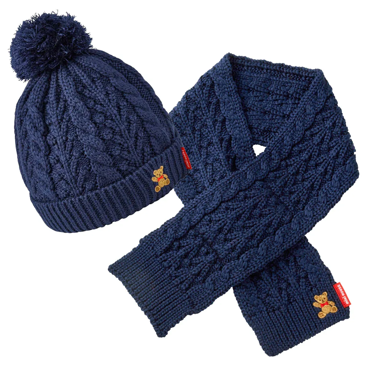[MIKI HOUSE Bear Cable Knit Scarf]