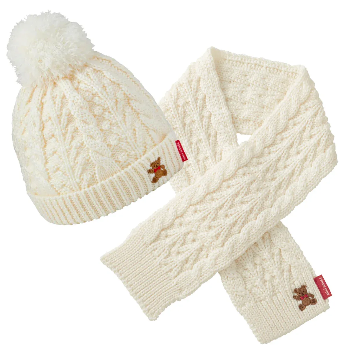 Welcome winter with ultimate coziness. Delivering premium warmth and comfort, this gift set comes with a MIKI HOUSE Bear cable knit hat and scarf. It is the perfect gift set to elevate the everyday with MIKI HOUSE luxury.