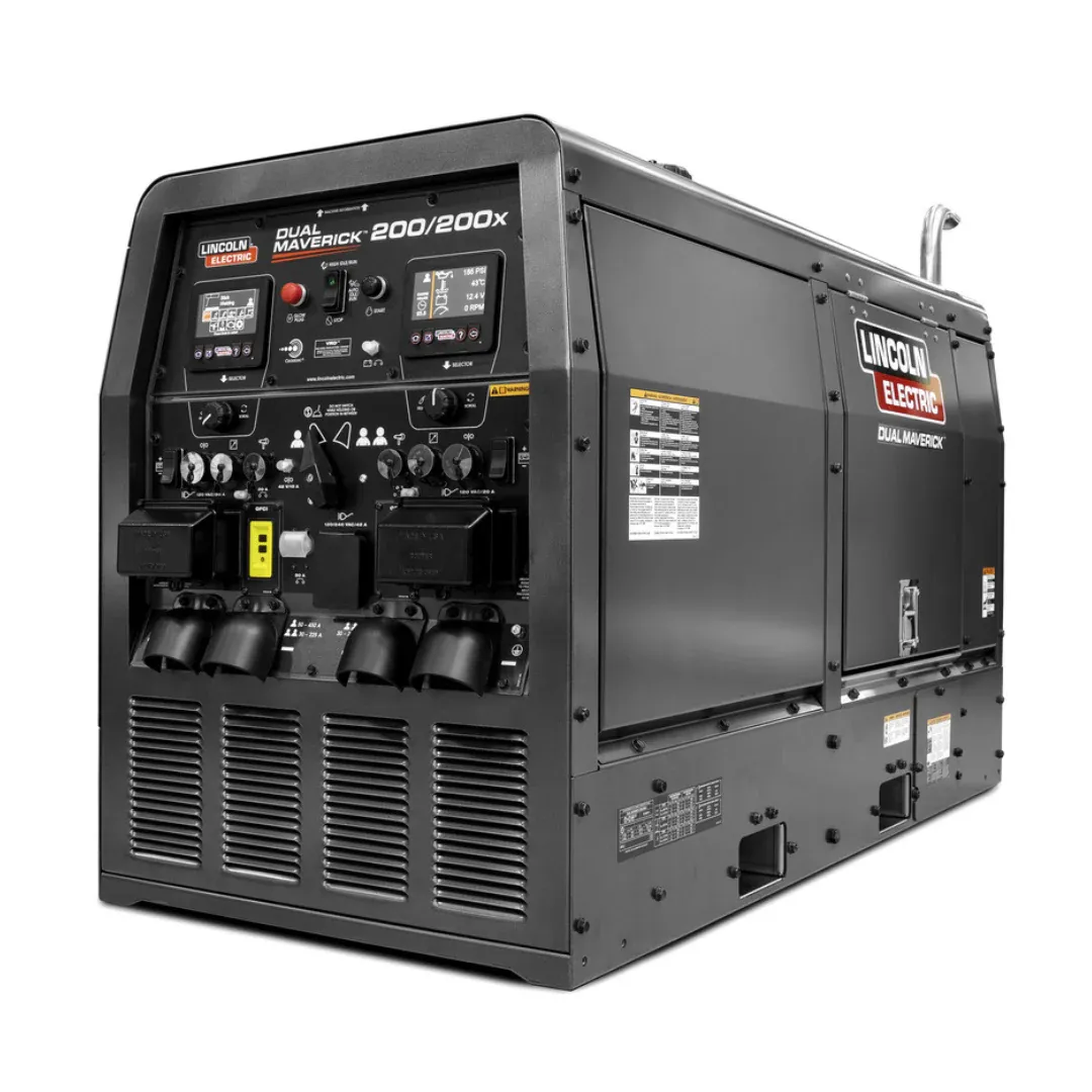 The Dual Maverick® 200/200X is an advanced engine-driven welder with dual welding outputs. This best-in-class arc welding machine provides substantial power to multiple welding arcs, runs quietly, and promotes fuel savings with variable engine RPM and auto start/stop capabilities.