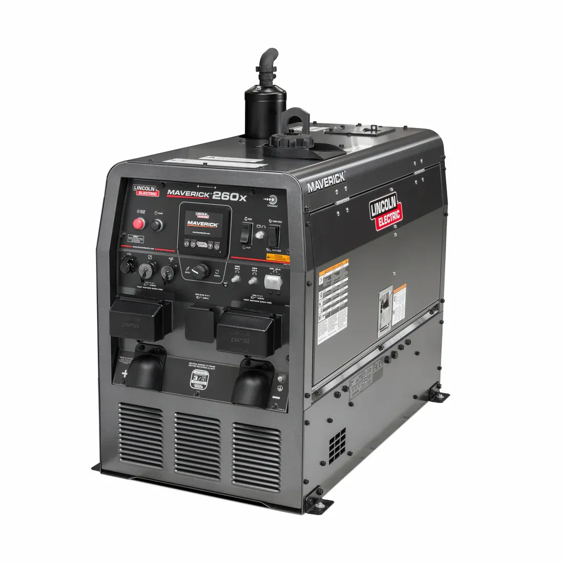 The Maverick® 260X is an advanced diesel engine-driven welding machine / generator with the perfect combination of size, performance, and innovation. This best-in-class arc welding machine provides substantial power and promotes fuel savings with auto start/stop capability. In addition, the machine boasts an advanced user interface on a heavy-duty 4.6 in. weatherproof LCD screen. The machine also features CrossLinc® technology, which allows the adjustment of machine output at the arc to promote productivity, site safety, and overall weld quality.