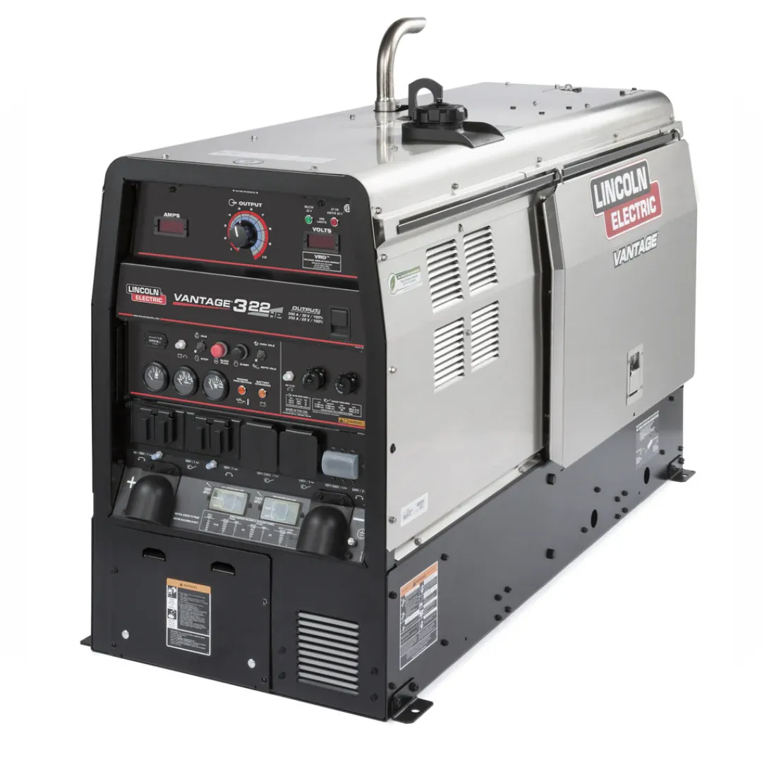The Vantage® 322 is a versatile welder/generator offering up to 400 amps of welding output and 11 kW of auxiliary power. Featuring a compact design and multi-process welding capabilities, the machine allows operators to handle a wide range of tasks from stick or wire welding to powering jobsite tools.