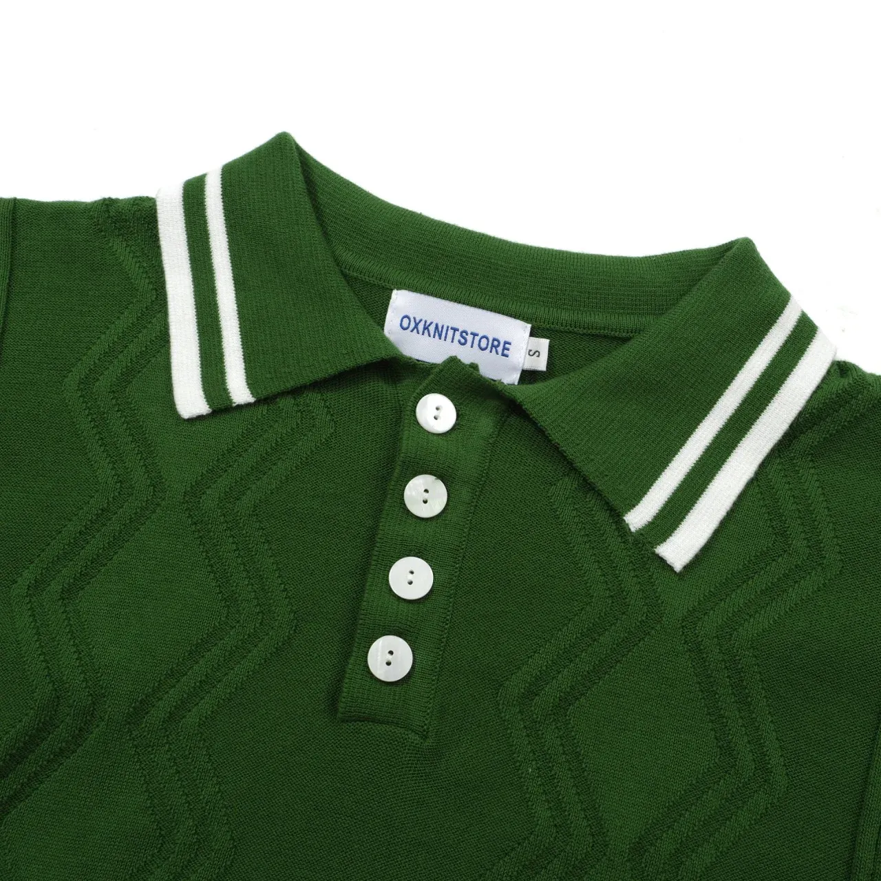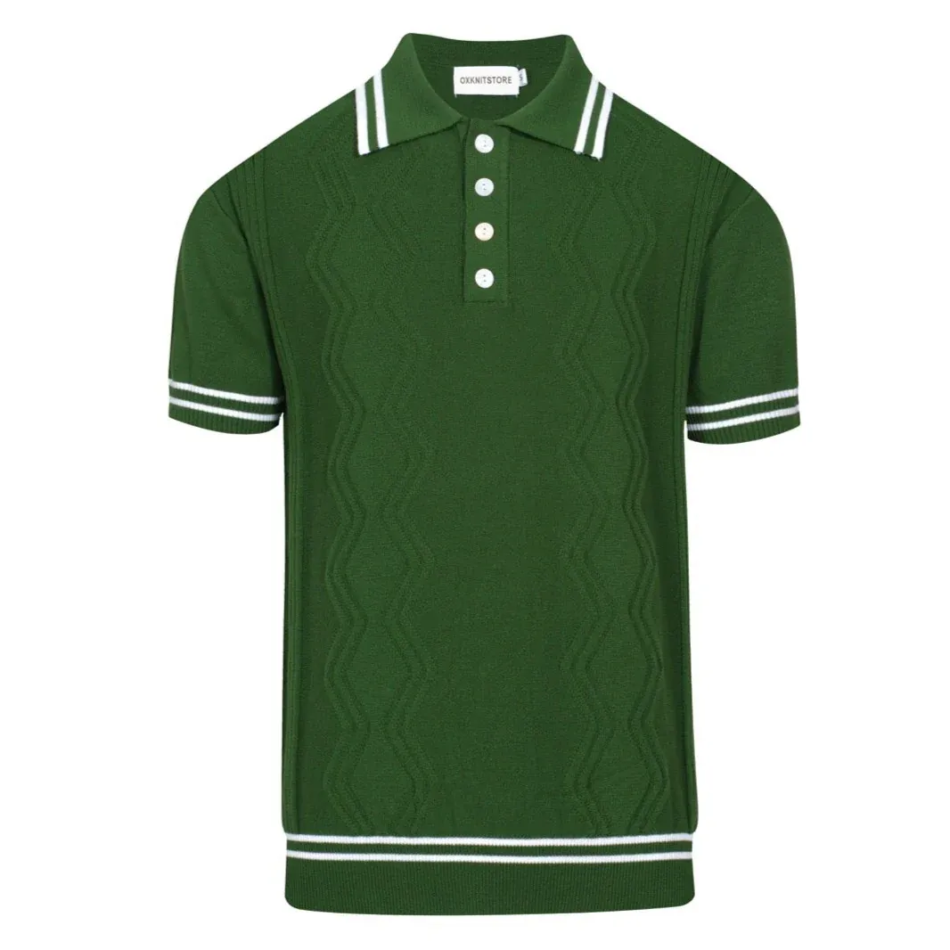Men’s Classic Green Cable Knit Polo – 60s Mod-Inspired Short Sleeve Shirt