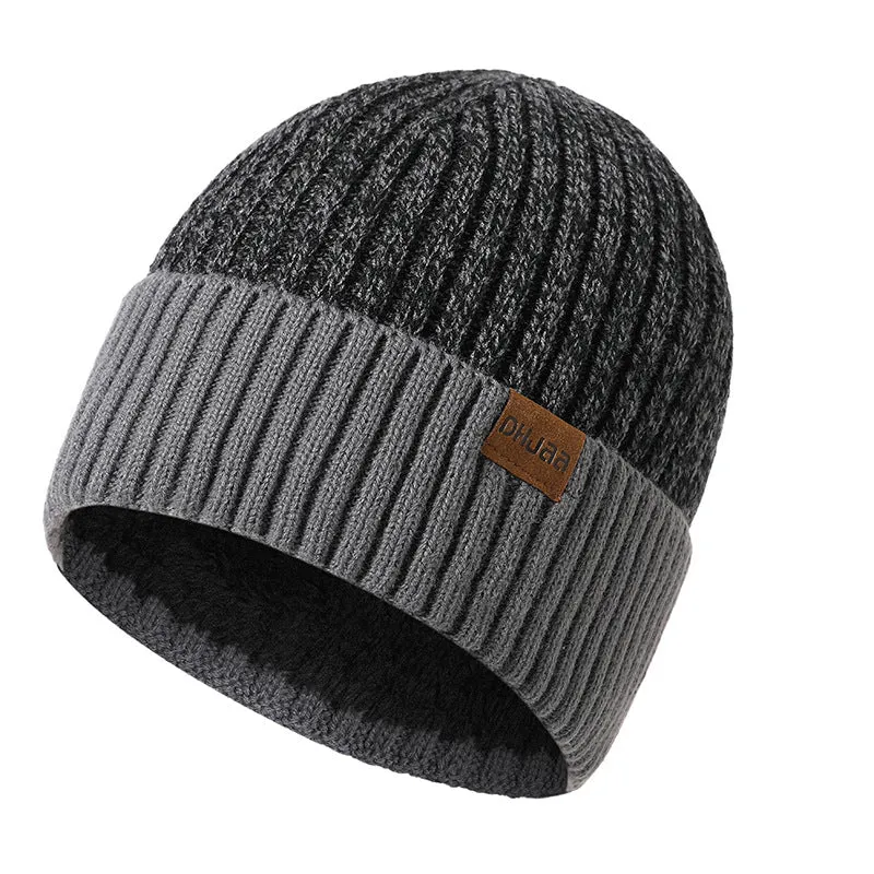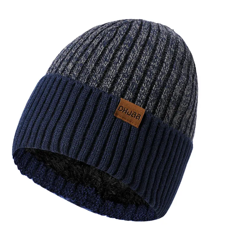 Men’s Double Layer Woolen Cap Adult New plus Velvet Warm Knitted Hat