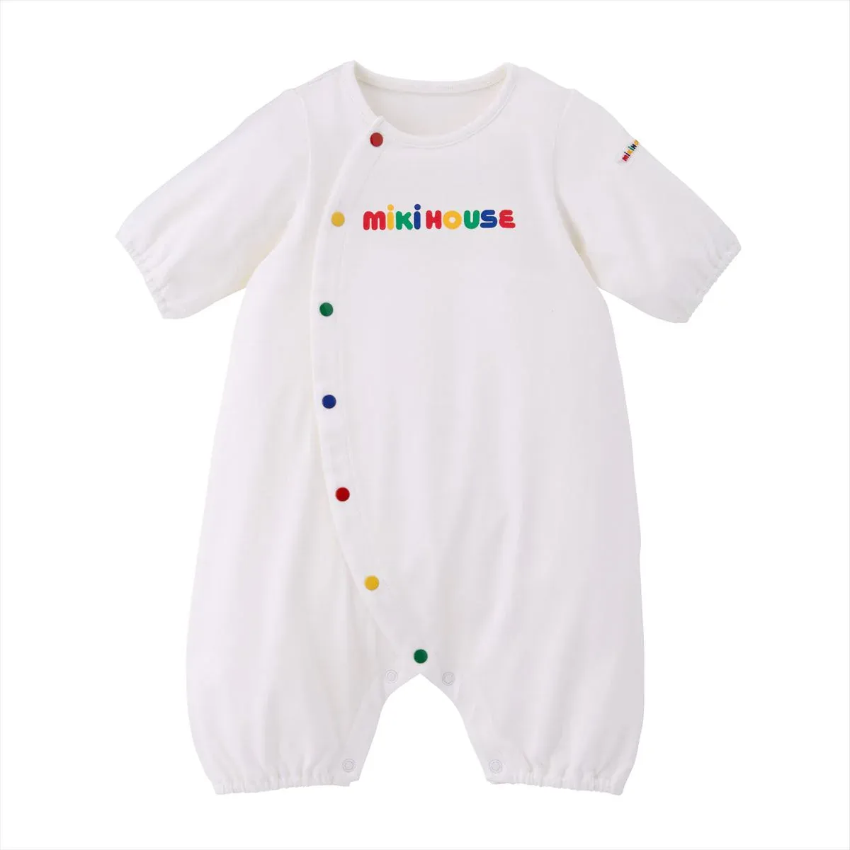 A newcomer from our fan-loved Back Logo Collection: a newborn-fit coverall featuring signature MIKI HOUSE logos and button accents in bright shades of rainbow. Designed with shorter sleeves and total length compared to our 2-way coveralls, this mini terry jersey coverall can be worn from your baby’s first days. It’s the perfect way to welcome spring to early summer babies.