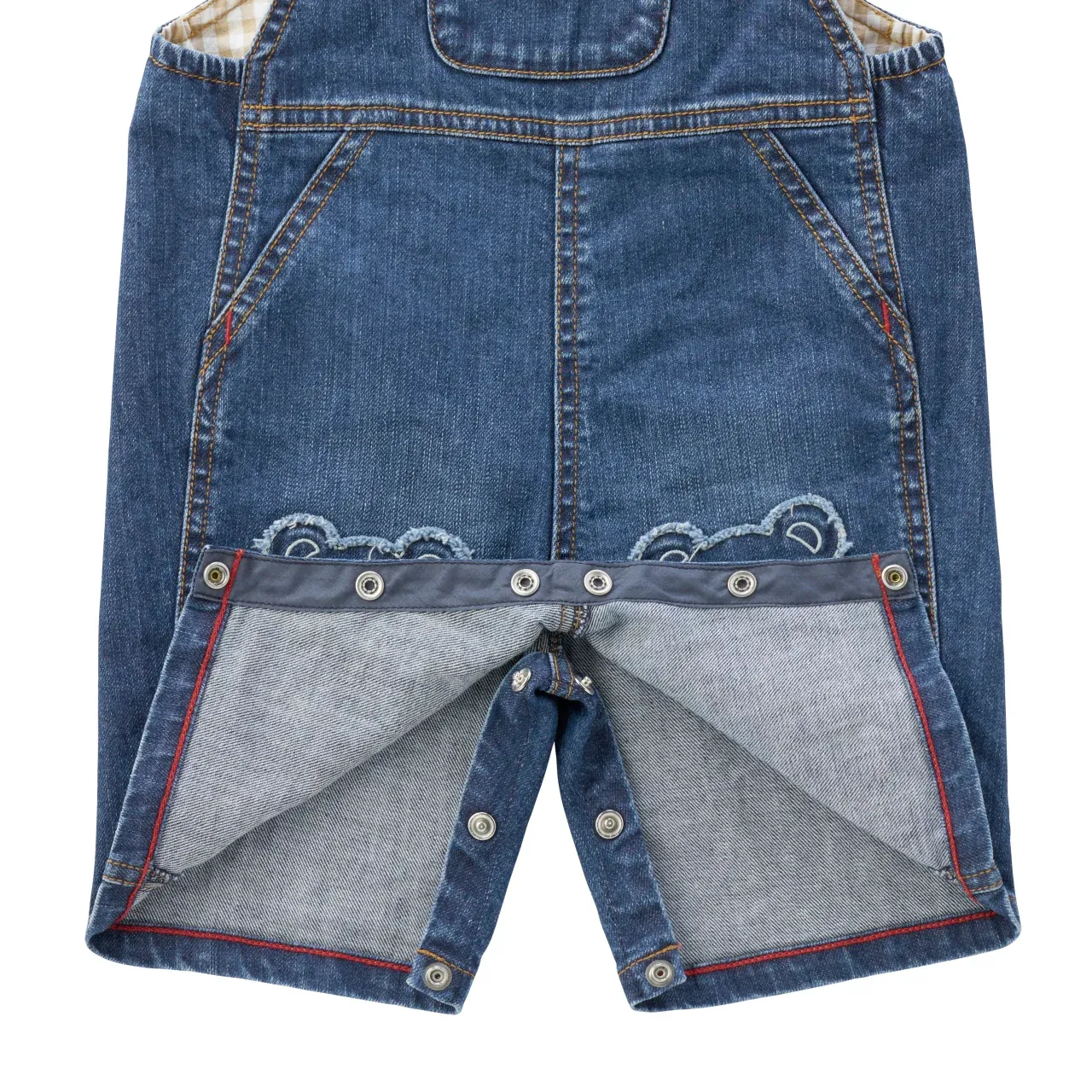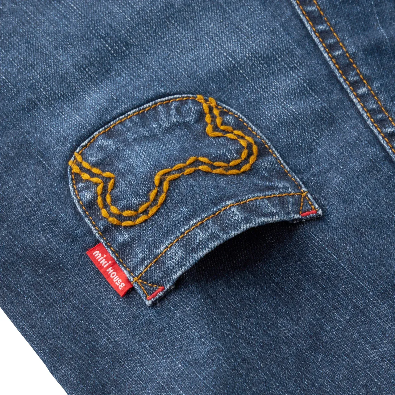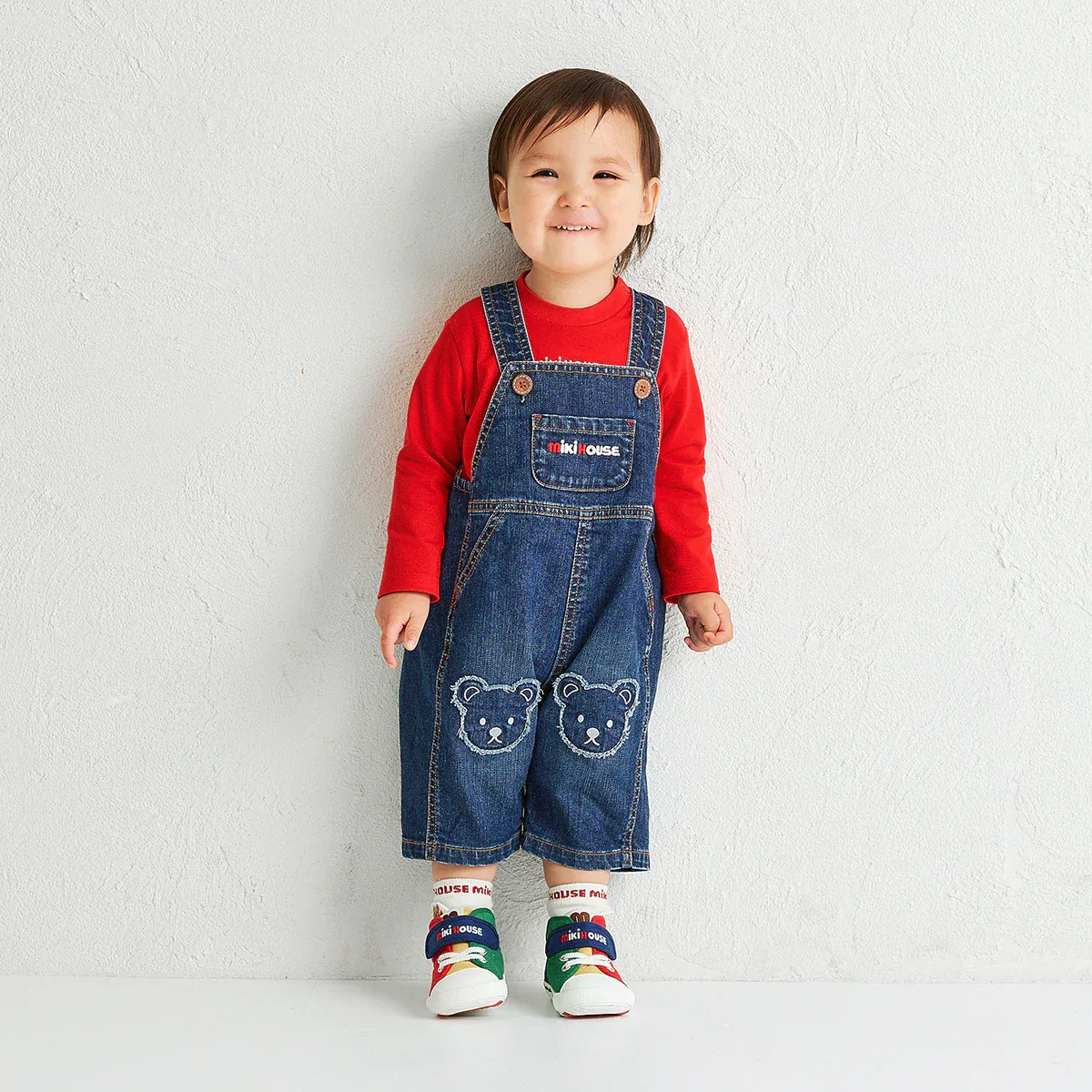 Gimme rich gradients of lived-in indigo and denim MIKI HOUSE Bear appliqué with raw edging all day every day. These sweet yet rough overalls are the versatile essential we’ve all been waiting for. Expertly crafted in bio-bleach treated and sandblasted 8.5 oz stretchy denim for everyday comfort, they coordinate seamlessly with any top.