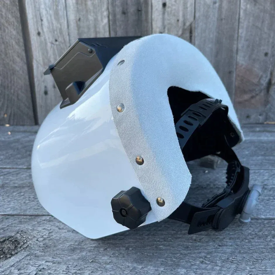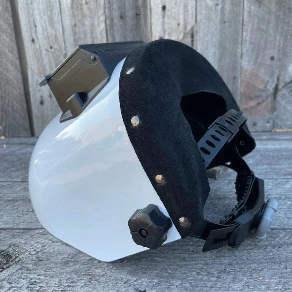 The Chopped Top Outlaw Leather Proliner Welding Hood with Suede Top is crafted with high-quality fiber glass filled thermoplastic, and guarantees exceptional durability and protection for every welding task. The unique feature of the pipeliner design includes cutting one inch off the top piece, providing improved visibility and comfort.