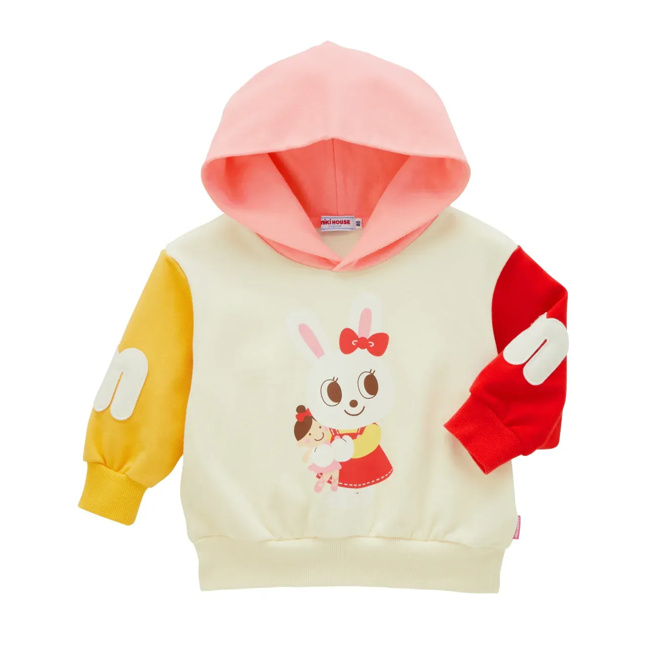 Come play with me! Cute little Pucchi/Usako holding her favorite toy takes center stage on this hoodie featuring bold graphics and an eye-catching color block design. Lovingly crafted in fleece-lined fabric, it offers much-needed warmth on crisp days. Pair it with other sweet Pucchi/Usako-inspired pieces from the same collection.
