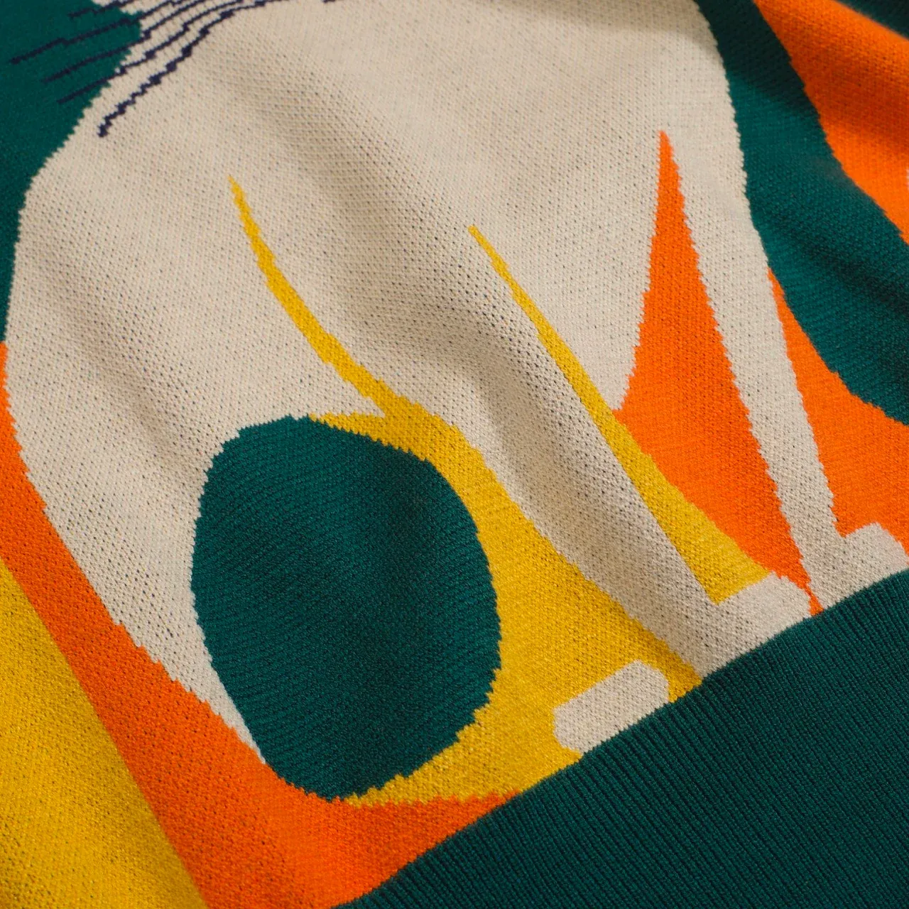 A bold fusion of vintage flair and feline finesse, this short-sleeve knit tee is a wearable work of art. Featuring a sleek abstract cat illustration in vibrant orange, green, and yellow, it’s the ultimate nod to 60s mod design and playful individuality.