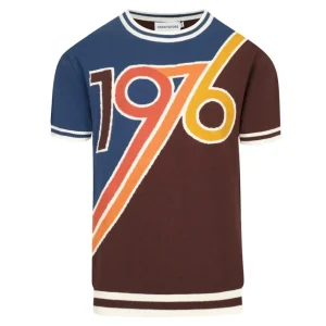 Men’s 70s Graphic Knit Tee – Retro “1976” Colorblock Shirt