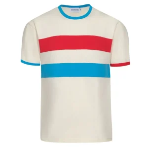 Men’s 70s Cream Red Blue Stripe Knit Tee – Retro Sport Style