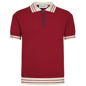 Men’s 60s Mod Red Knit Zip Polo – Retro Casual Contrast Trim Shirt