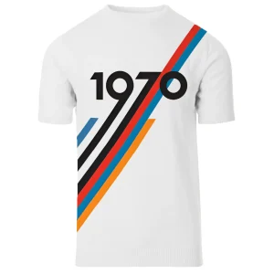 Men’s 1970 Retro Graphic Knit Tee – White with Racing Stripes