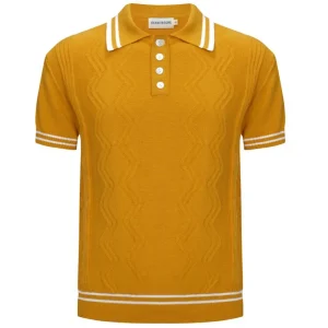 Men’s Retro Yellow Textured Knit Polo – 60s Mod Short Sleeve Shirt